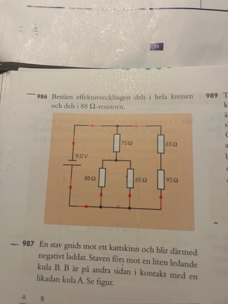 Angående b) uppgiften, med effektutvecklingen i 88 ohms resistorn, så måste den vara betydligt mindre än den samlade effekten på 1,2 W.