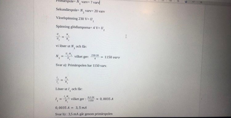 OliviaH skrev:Så N varv ska betyda primärspolen? Och man ska utföra beräkning för att få reda på antal varv?