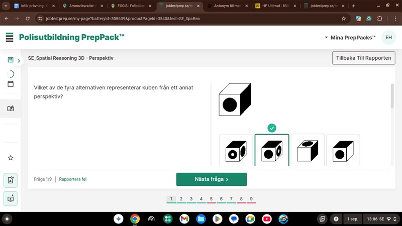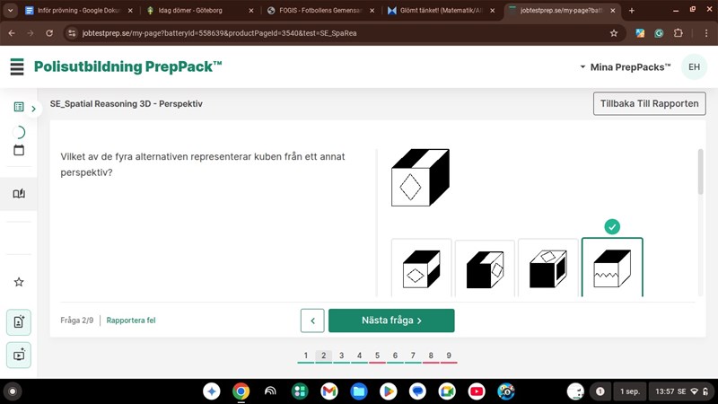 Hej, tidigare visste jag hur man skulle tänka men har helt plötsligt glömt bort nu! "Kuben från ett annan perspektiv" - då undrar jag vad skillnaden är mellan svarslalternativ 2 och 4? Varför kan inte fyran vara rätt också? Att den dolda sidan är vit med? I exempel 4 står det: Svarsalternativ 4 kan elimineras för den vita sidan måste vara på den vänstra sidan och inte den högra.