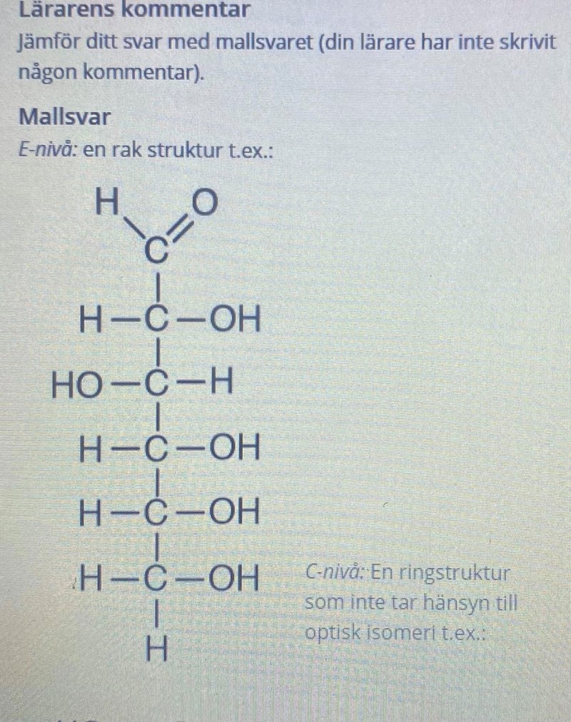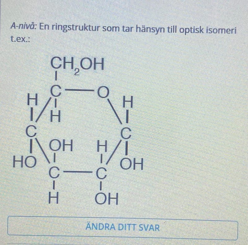 Och på A-nivå så inkluderar svaret den optiska isomerin, men då det är att rita behövs inte alfa/beta anges.