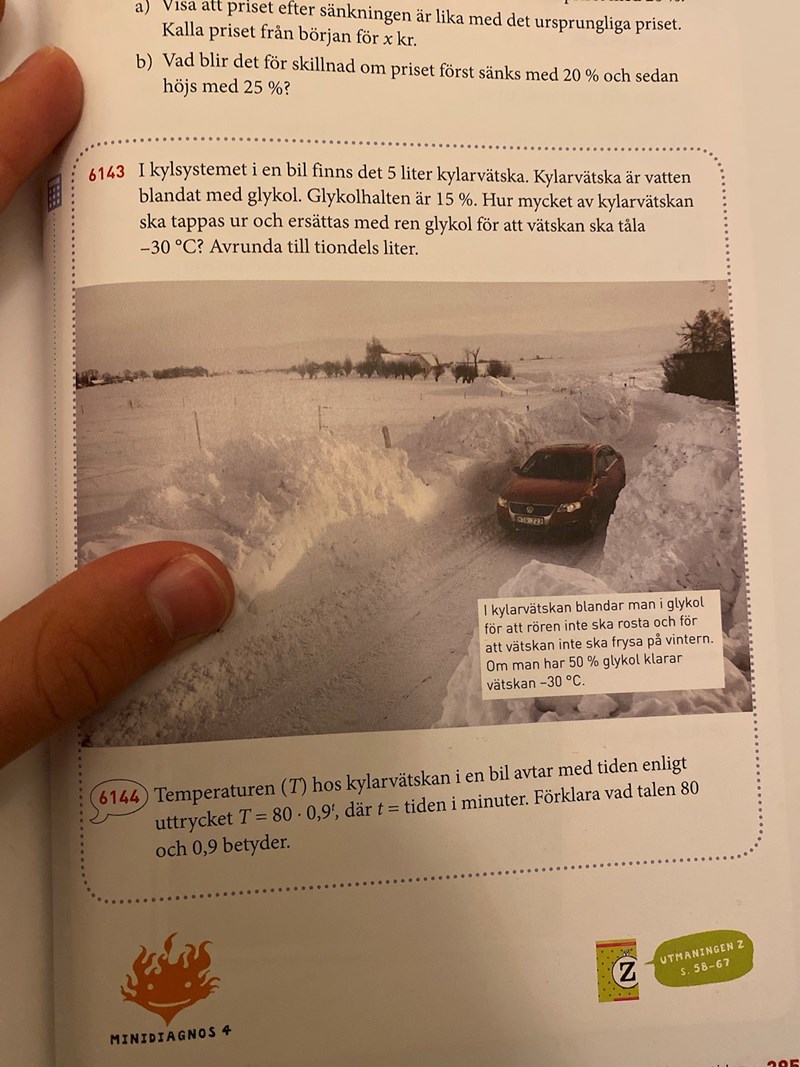 En början: 15% av 5 liter, dvs 0.75 liter, är glykol.