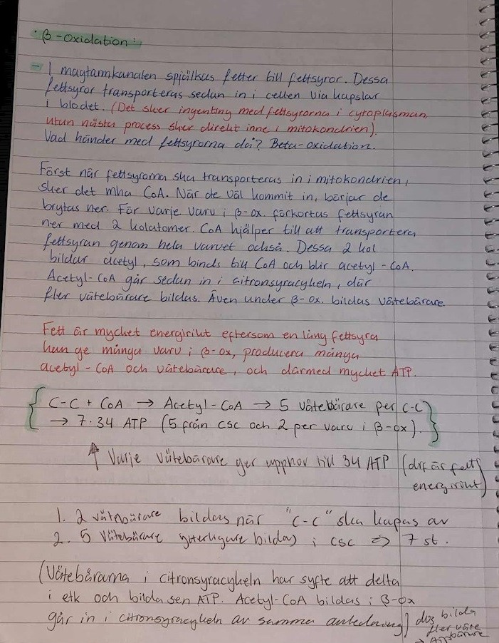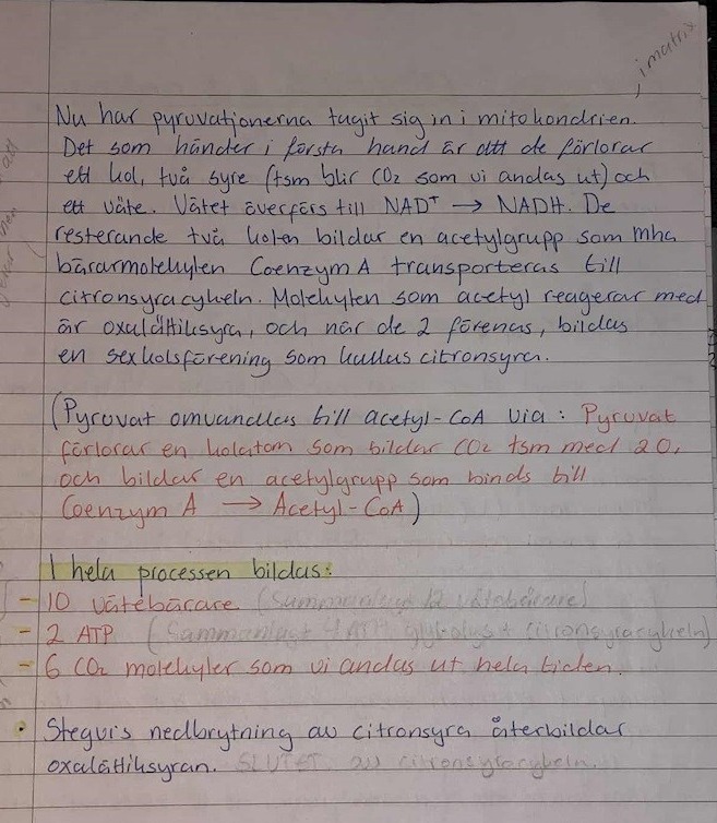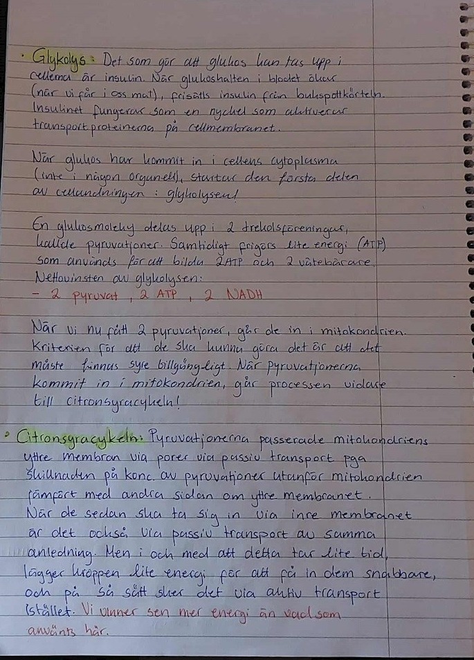 Hej där! Här är mina anteckningar där jag har sammanställt hela förklaringar till olika biologiska processer inför mitt kommande biologiprov. Det har varit en utmaning att få ihop allt till en sammanhängande och förklarande texter, men nu är det klart. :D