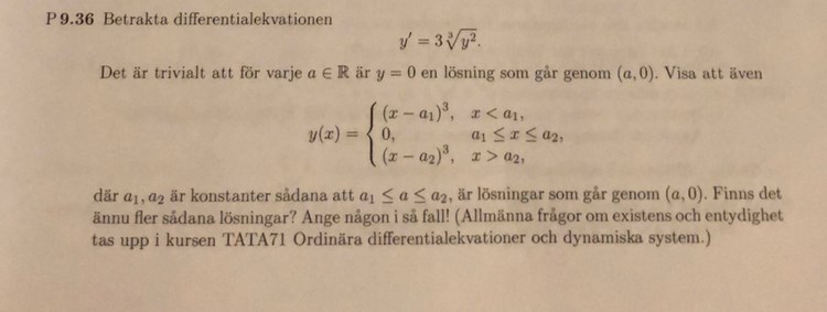 Hej! Har redan visats vad som ska visats och är nu på "finns det ännu fler sådana lösningar?". I facit står det endast "ja!" dvs det finns fler lösningar, men inget om hur de lösningarna ser ut. Jag har tänkt lite, skulle lösningen:
