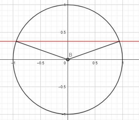 När man pratar om sinus motsvarar det y-värdet det vill säga vilka vinklar ger oss ett y-värde på 0.333? På bilden ovan ser man det väldigt tydligt att det finns två vinklar i intervallet som uppfyller det. Av symmetri ser vi att vilket gör att du får två lösningar eller mer visuellt ser man även också det.