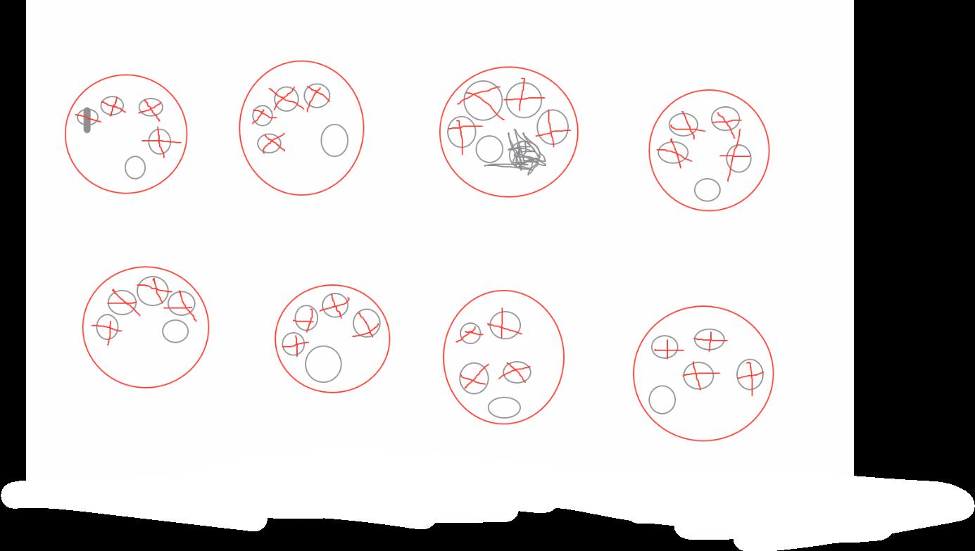 Sätt kryss i 4 av de 5 ringarna i 5 av de 8 rutorna (motsvarar antalet upptagna platser)