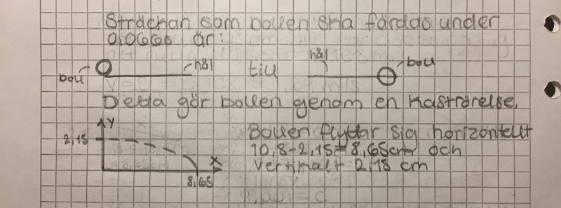 Horisontella sträckan är rätt, men hur rör sig bollen? Den går inte längs den sträcka du har betecknat x, utan följer en kastparabel.