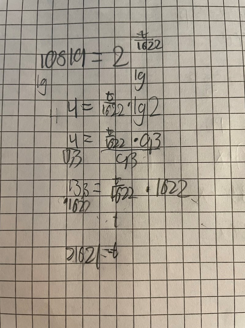 Nej, jag menar att du skall sätta in t=10819 i formeln 2-t/1622 för att se om du får fram 0,01.