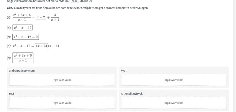 Det inringade i a är en kvot eftersom det är resultatet av en division (där det även finns en rest). Täljare/Nämnare = Kvot (+ eventuell Rest)
