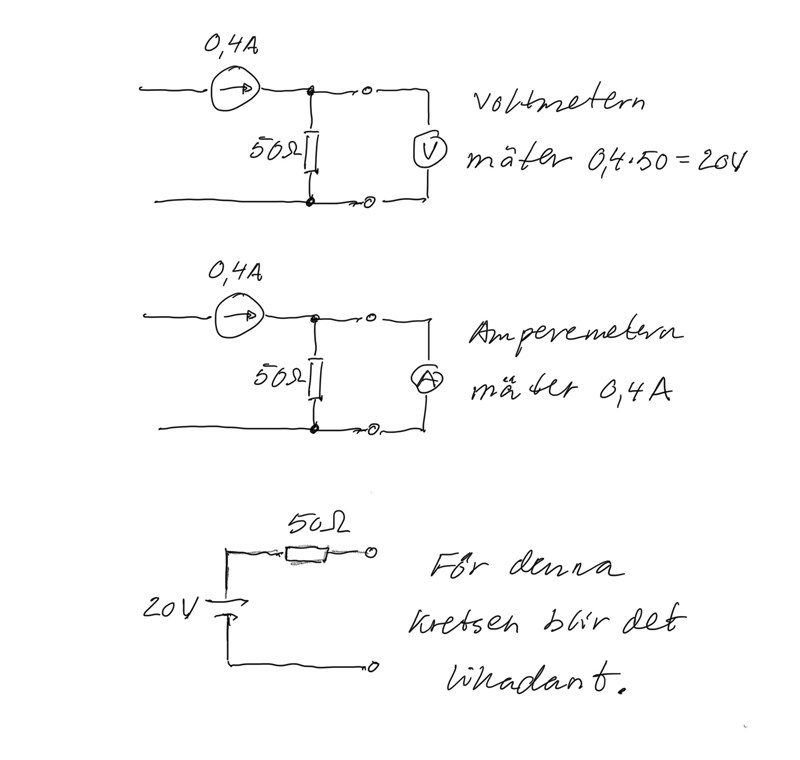 De inringade kretsarna påverkar inte tomgångsspänning eller kortslutningsström.