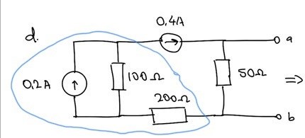 Som rubriken lyder ska jag göra om följande krets nedan till motsvarande Thevenin krets. Detta är min lösningsgång och jag vet inte hur jag ska hitta Rth=50ΩR_{th}=50 \Omega?
