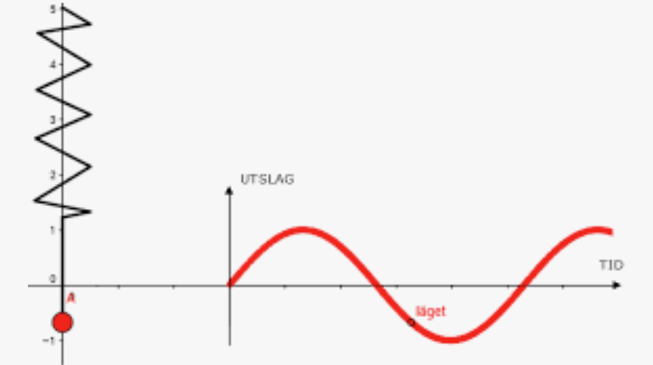 En partikel utför en harmonisk svängning med amplituden A och svängningstiden 2,4 s. Hur lång tid tar det för partikeln att gå från jämviktsläget till halva amplituden, 0,5A?