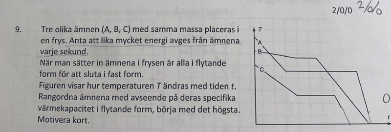 Jaha! tror jag fattar då. Är rätt svar A,C,B? dock, tror jag inte jag förstod helt hur vi fattade att lutningen motsvarade den specifika värme kapaciteten