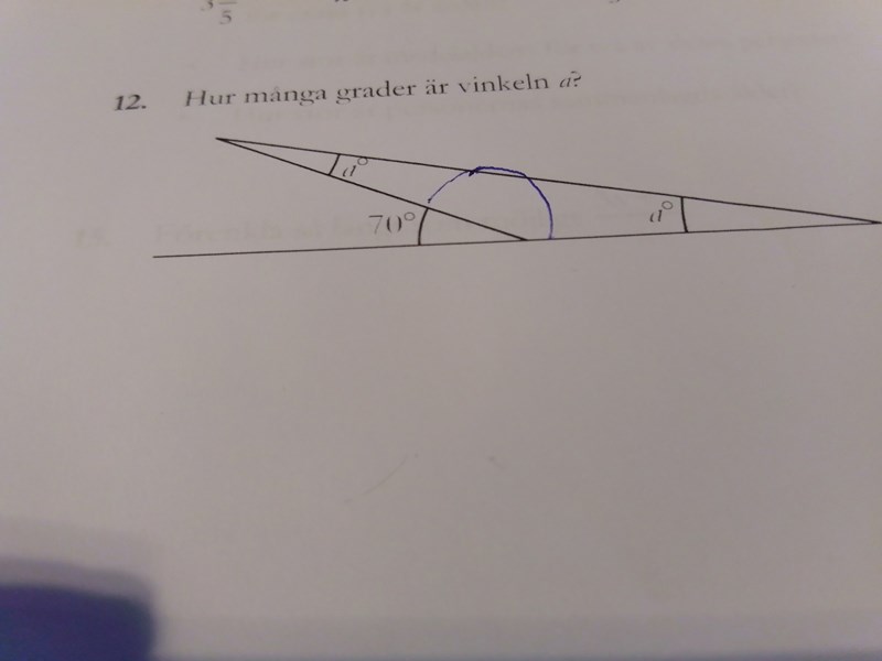 Alltså är då den blåa vinkeln du ritat ut 180-70=110 grader.