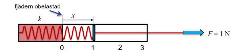 Frågan är, hur långt förlängs "den" för varje Newton. Jag ska ta fram och k.