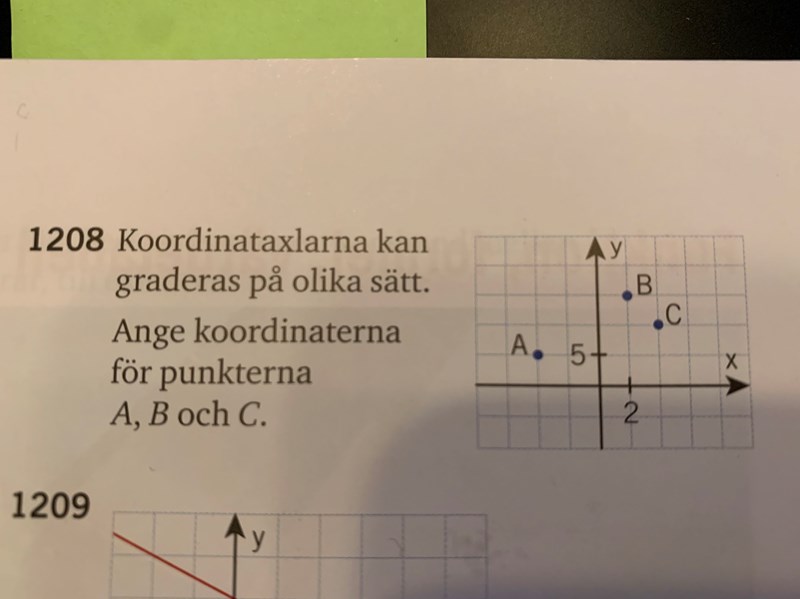 Bredvid uppgiften finns en liten bild på ett koordinatsystem med en x-axel där det står en tvåa till höger och en y-axel där det står en femma till vänster.
