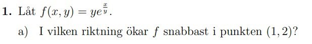Har du svårt att räkna ut gradienten eller undrar du varför gradienten pekar i sökt riktning? Jag svarar på andra frågan. Gradienten är vinkelrät mot nivåkurvorna, då blir det brantaste riktningen uppåt. Byter du tecken på gradienten får du brantaste riktning nedåt.