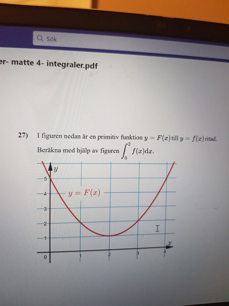 Läs av i bilden vad F(2) är och vad F(0) är: