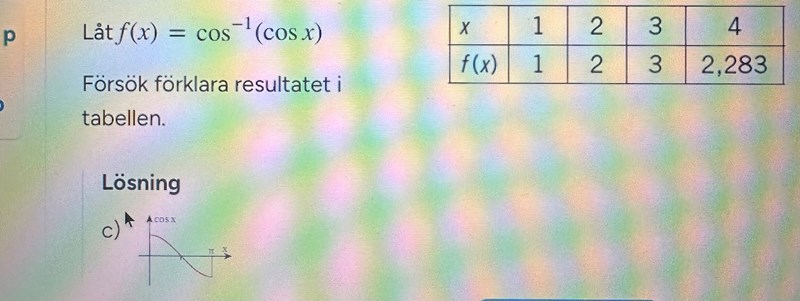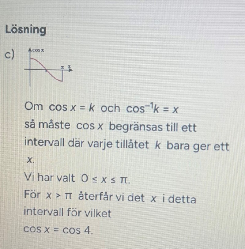 Bilden visar en begränsad del av grafen till cos(x), nämligen den del som har valts i facit.