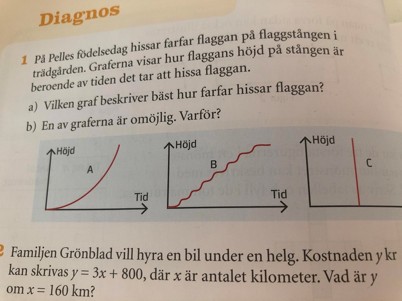 På fråga 1b borde svaret inte vara c, för att flaggan kan inte vara på samma höjd och samma tid hela tiden. På a så valde jag B för att när man hissar en flagga så drar man i ett snöre som gör att flaggan hissas upp sakta (upp o lite ner)