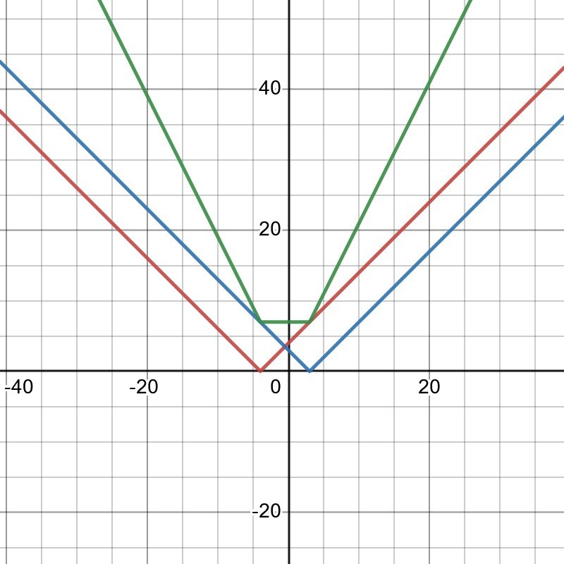 Rita grafen till följande absolutbelopp: y= abs(x+4)+abs(3-x)