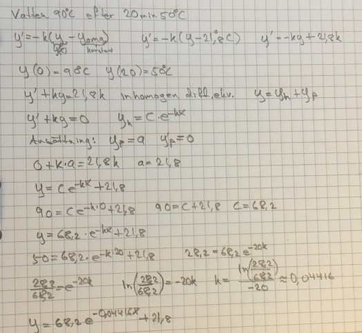 där är temperaturen vid tiden , är ursprungstemperaturen, och är omgivningens temperatur.