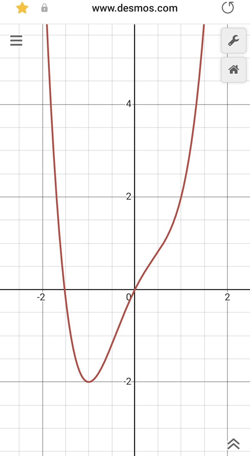Men en 4e gradare har då 0-4 reella lösningar/nollställen men iom formen/utseendet på f prim(x) i den jag ritade så anses f(x) bara ha 0-2 reella nollställen/lösningar