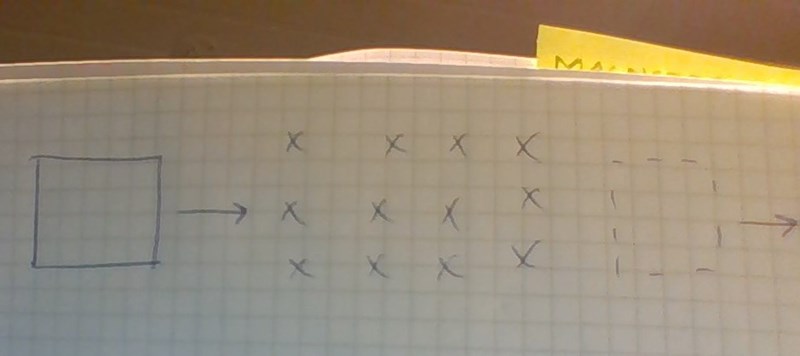 En kvadratisk metalltrådslinga rör sig med konstant hastighet från ett fältfritt område in genom ett område med homogent magnetfält och åter ut i ett fältfritt område (se figur).