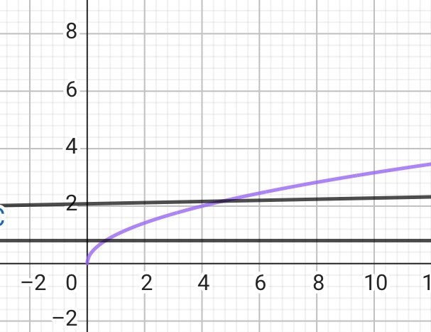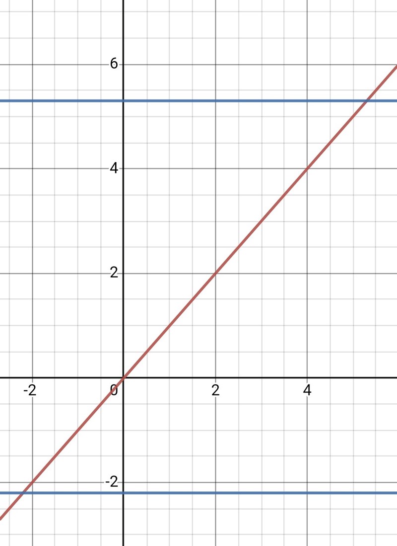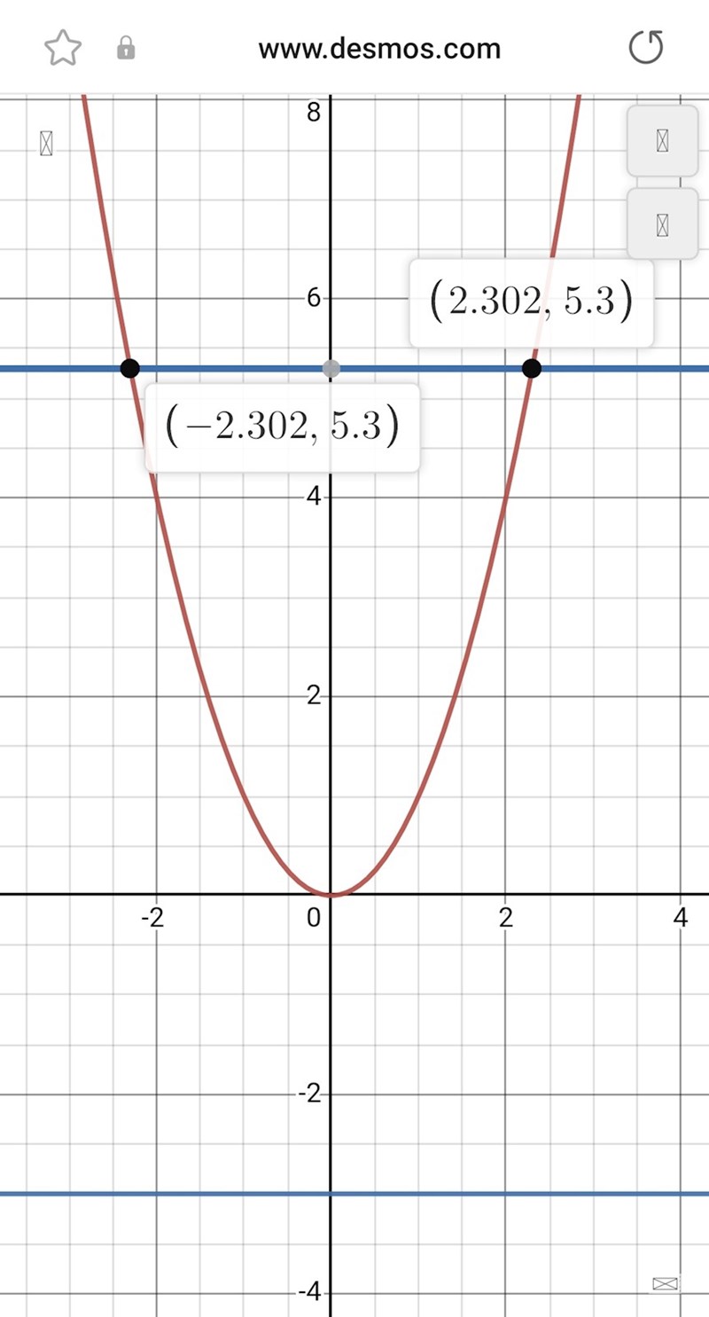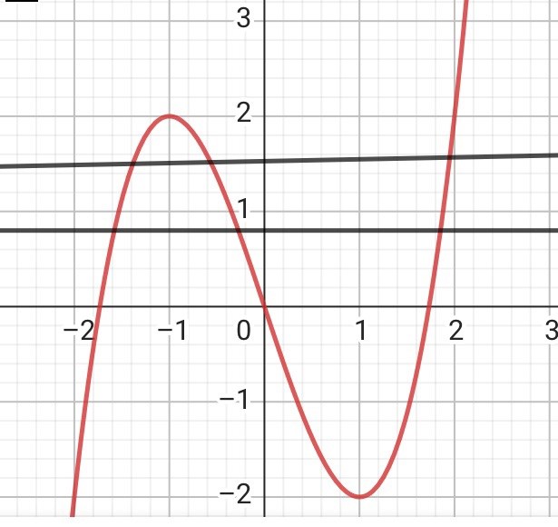 Jag har ritat grafen till (röd) och ett par godtyckliga vågräta linjer (blåa).