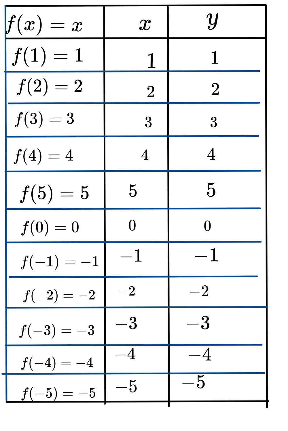 Eftersom notationen g:ℝ→ℝ så kommer g har definitionsmängden som är alla de reella talen dvs mängden av alla reella tal och i den ingår både heltal, rationella tal och irrationella tal. Det kan uttryckas som Df=ℝ. Målmängden för g är densamma som definitionsmängden dvs Y=ℝ. Värdemängden för g är de möjliga värden som g kan anta vilket i detta fall är Vf=ℝ