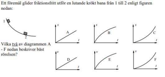 Jag kan utesluta A,D eftersom de båda är konstanta vilket det inte blir när föremålet glider utför en krökt bana. Men sedan vet jag inte hur jag ska komma fram?