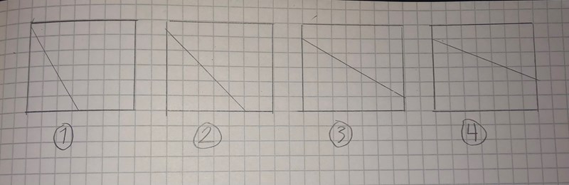 1. Lutningen vid punkt 1,   2. Lutningen mellan punkt 1 & 2,  3. Lutningen mellan punkt 1&2, 4. Lutningen vid punk 2,