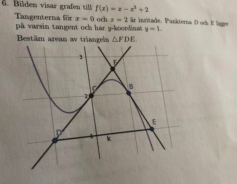 Jan Ragnar skrev:Jag tycker texten i uppgiften verkar konstig. Tangenten i B har väl x-värdet 1?