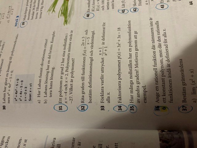 - Om du inte redan gjort det: Kontrollera ditt polynom genom att beräkna polynomets värde vid x = -4, x = 2 och x = -1 och jämför med de givna värdena.