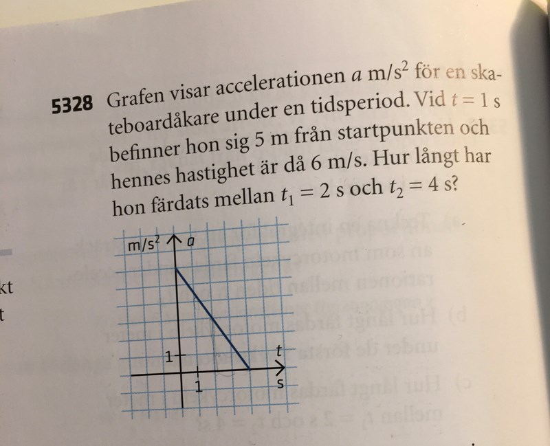 Eftersom accelerationen är derivatan av hastigheten så gäller det att hastigheten är en andragradsfunktion, dvs , där du kan bestämma och ur sambandet och ur villkoret .