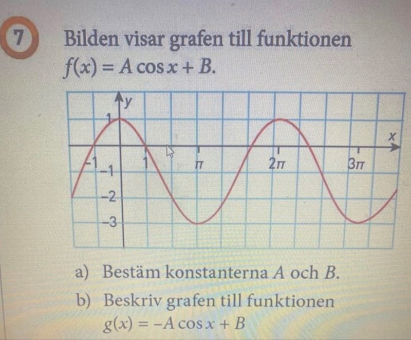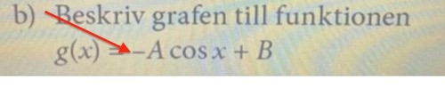 Eftersom g(x) = -Acos(x) + B så får vi att g(x) = -2cos(x) - 1.