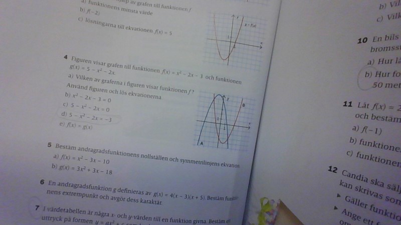 Jag behöver hjälp med fråga 4d. Jag fattar att man ska få fram två nollställen men hur gör man det med hjälp av att kolla på figuren? kan bara lösa det med pq.