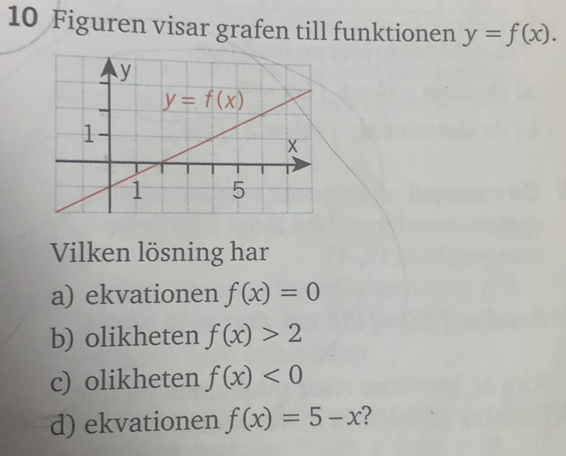 Ett annat sätt att tänka är att bestämma funktionen i bilden, vet du hur man gör det? Sedan kan du sätta ditt uttryck för f(x) lika med 5-x (som är en annan funktion, säg g(x)).
