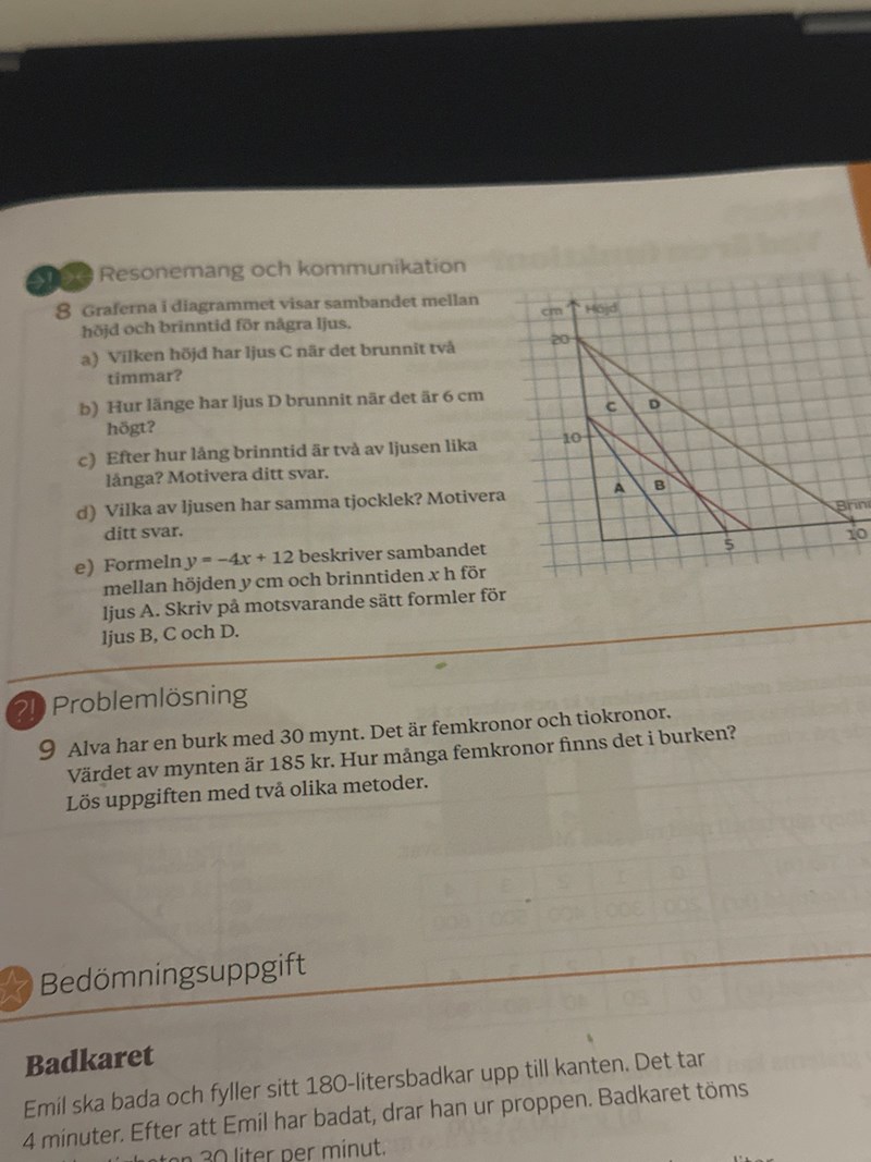 d) är det inte C och D båda börjar på 20 cm och A och B båda på 12