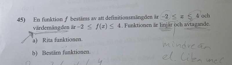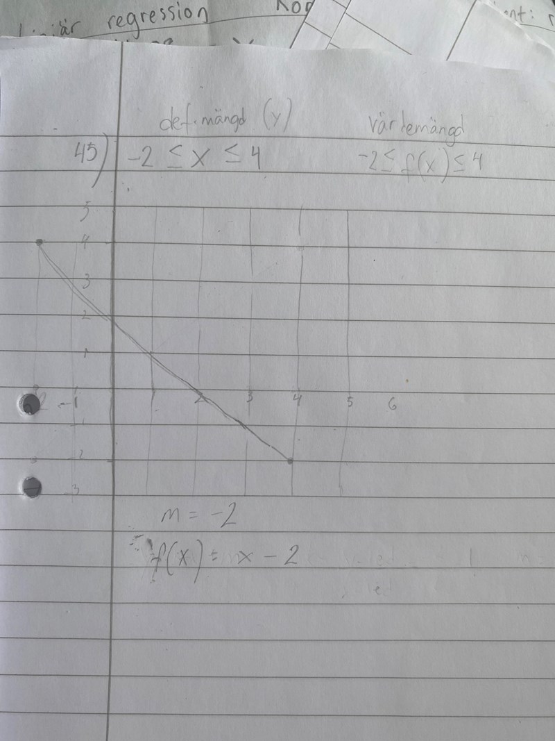 Funktionen borde bli f(x) = -x+2 eftersom den är avtagande. Därför lutar den inte åt andra hållet.