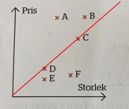 Om lägenheterna skall ha samma pris/kvadratmeter, skall just vara konstant (alltså samma värde). Då blir det en rät linje i din graf.