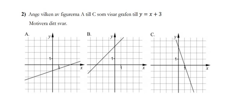 Ett sätt är att sätta in nåt värde på x och se vad y blir och se om nån av graferna stämmer. Om flera stämmer så tar man nåt annat värde på x.