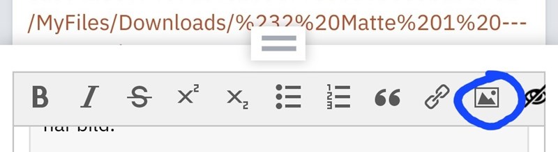 Pröva att ladda upp bilden istället för att länka till den. Klicka på den här ikonen i verktygslisten: