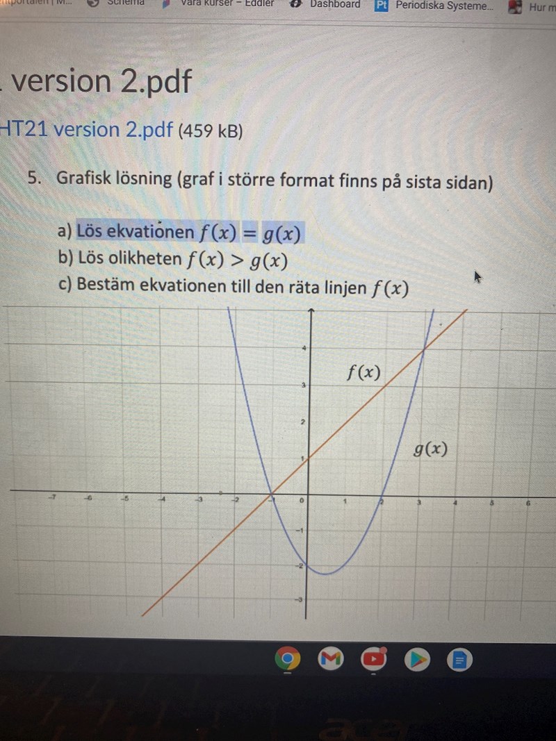 Avläs i grafen. När möts graferna för f(x) och g(x)?