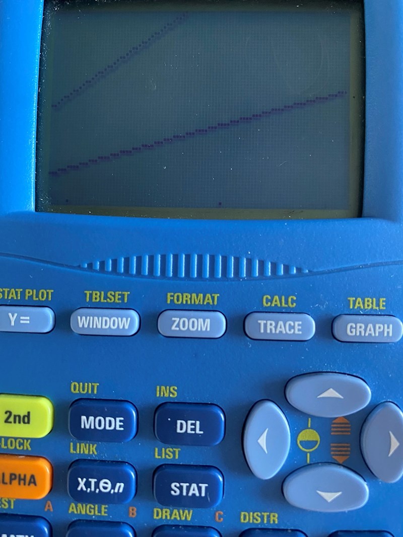 jag trycker på ”y=” på miniräknaren och skriver på följande sätt:
