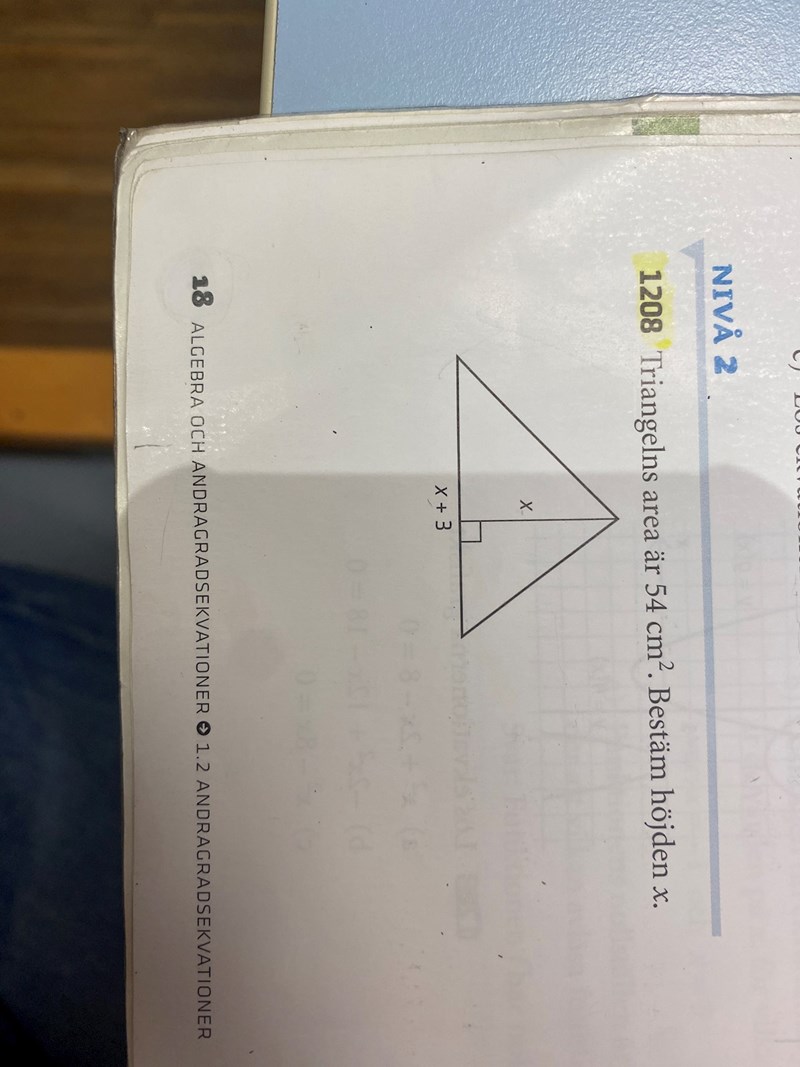 Hej! Har du ställt upp en ekvation för att beräkna x? Du kommer få en andragradsekvation. Den kan du lösa algebraiskt med pq-formeln, har ni gått igenom den?