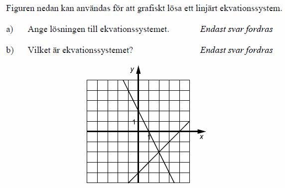 b: Skriv de båda linjerna på formen y = kx+m och sätt en klammer runt de båda ekvationerna.