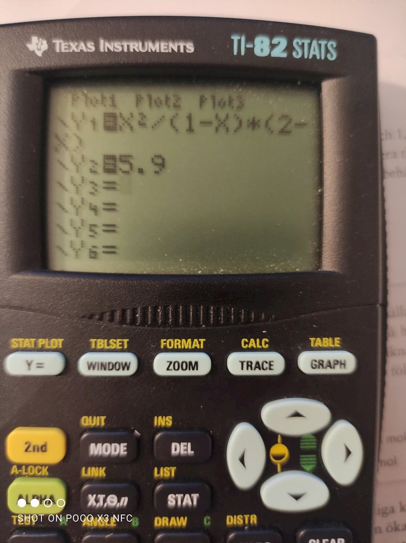 Det var ett tag sedan jag använde min grafräknare, och jag behöver lite hjälp. Jag försöker göra grafiska lösningar, men jag får olika svar beroende på om jag använder min TI-82 Stats eller om jag använder onlinelösningar som GeoGebra. Jag bifogar två bilder på hur jag har matat in informationen, så kanske någon ser vad jag har gjort för fel.