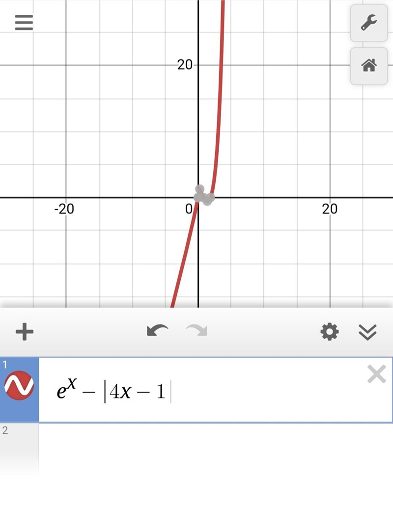Ja, det står f'(x) =e^x+4 >0,  och det är ju helt sant. Derivatan kommer aldrig att vara noll. Det betyder att funktionen kommer att ha en positiv derivata för alla x<1/4