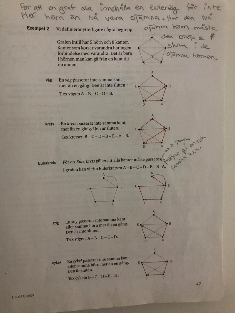 Hej, jag sitter och jobbar med grafteori men det är en del saker jag inte förstår. Såhär står det i min mattebok