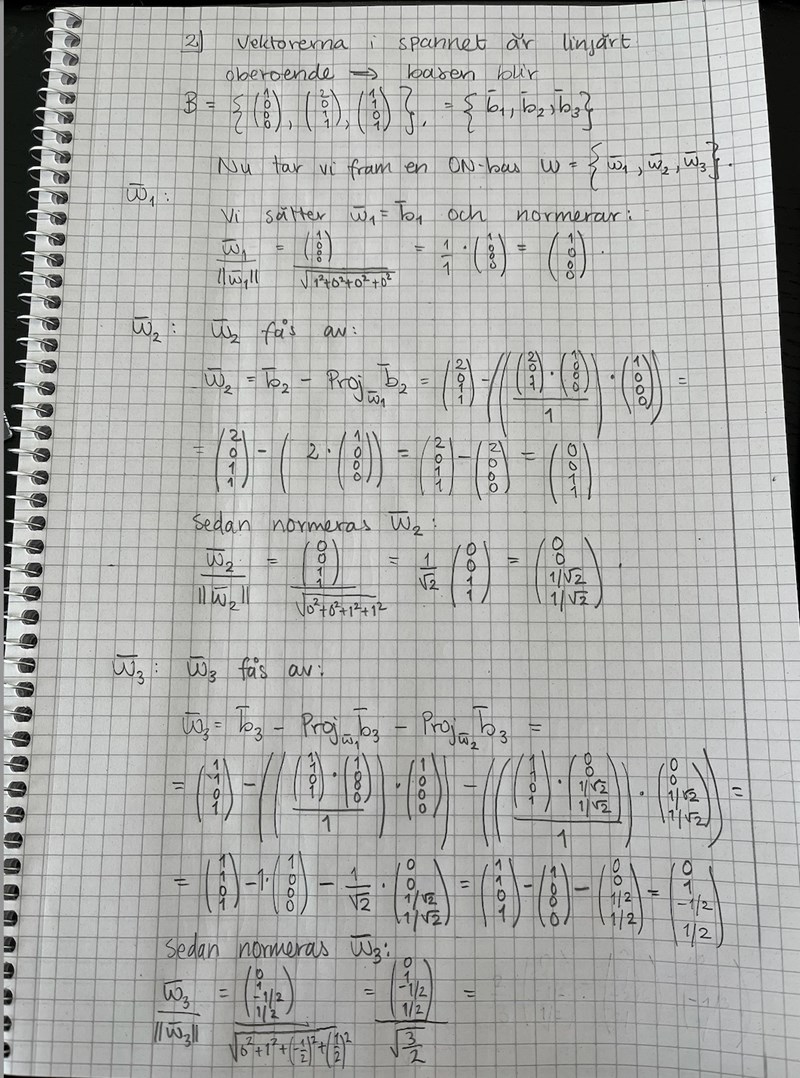 Huamej, Gram-Schmidt har jag nog glömt. Men är inte ditt och facits svar samma?